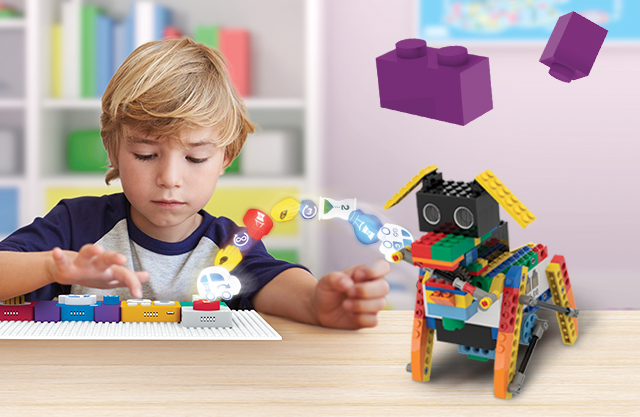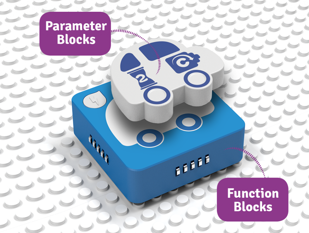 Sklapajući kockice Function & Parameter, dete stvara niz komandi koje će robot izvesti. Na
